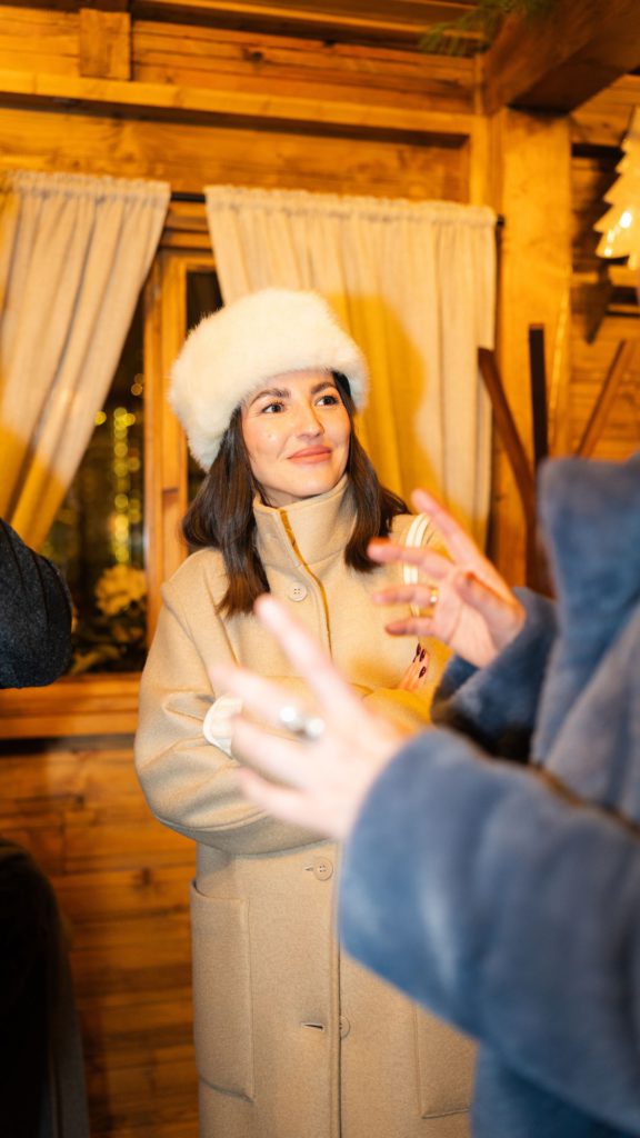 El exterior del hotel se transformó en un refugio invernal inspirado en las cabañas alpinas. Luces navideñas, estufas exteriores y un ambiente cálido y envolvente crearon el contraste perfecto con el frío propio de la temporada. Un marco cuidadosamente diseñado para poner en valor la esencia de Colmar Originals, una línea que fusiona el saber hacer técnico de la marca con un lenguaje estético cada vez más urbano y sofisticado.