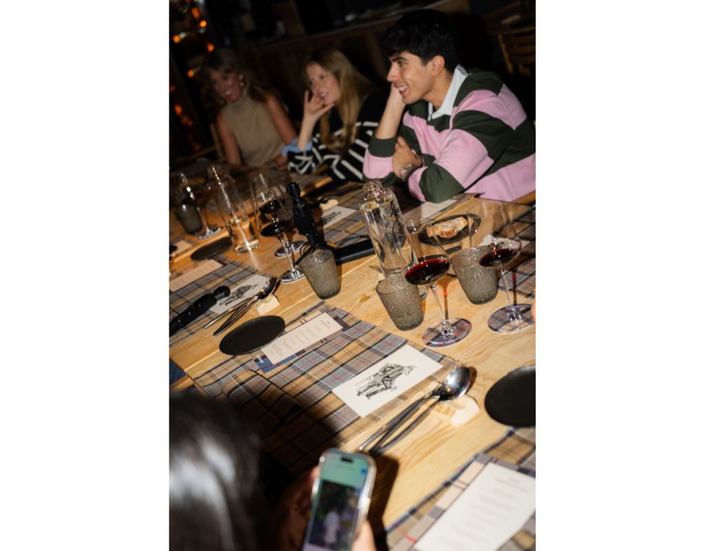 El viaje avanzó hasta La Coruña, con base en el Hotel Noa Boutique, donde el paisaje atlántico cobró protagonismo. Allí, el grupo experimentó en primera persona una clase de surf en la playa de Bastiagueiro, seguida de un picnic frente al mar. A la tarde, participaron en un taller creativo en tienda, en el que reinterpretaron el icónico tartán de la marca a través de la técnica del decoupage. La experiencia concluyó con una cena de despedida en A Mundiña. Cada momento gastronómico estuvo acompañado de un cuidado especial por la estética: manteles individuales, servilletas y posavasos con distintos tartanes de Barbour que cambiaban cada día para reforzar la identidad visual.